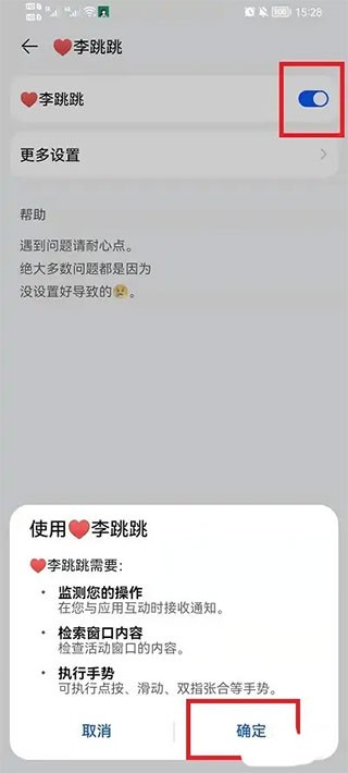 打开软件在软件首页中打开按钮,然后就会出现弹窗,点击弹窗中的【OK】进入到手机无障碍设置功能中;