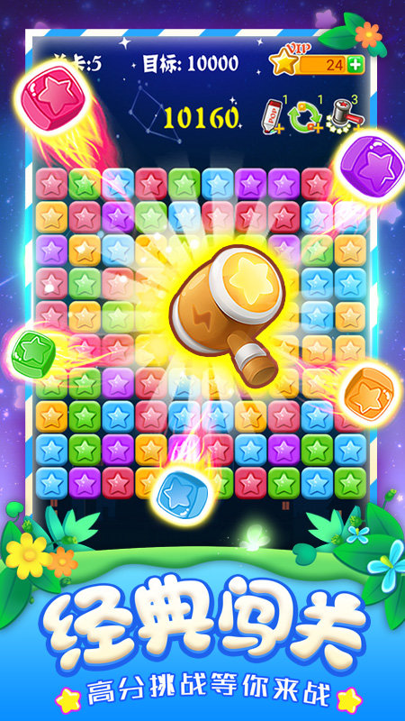 1、创新玩法-消除星星:以新颖的三消闯关模式为特色,每一道关卡均经过精心编排,旨在为玩家提供高水准的游戏体验。