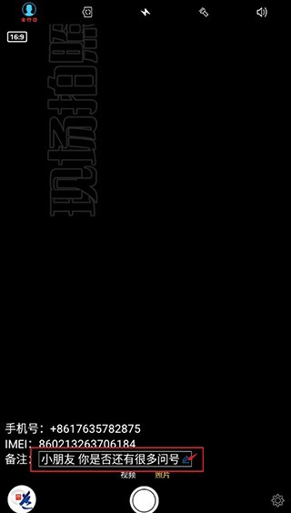 3、现在返回拍摄页面,就可以看到自己的备注内容了,若是想要修改,可以点击蓝色标记按钮。
